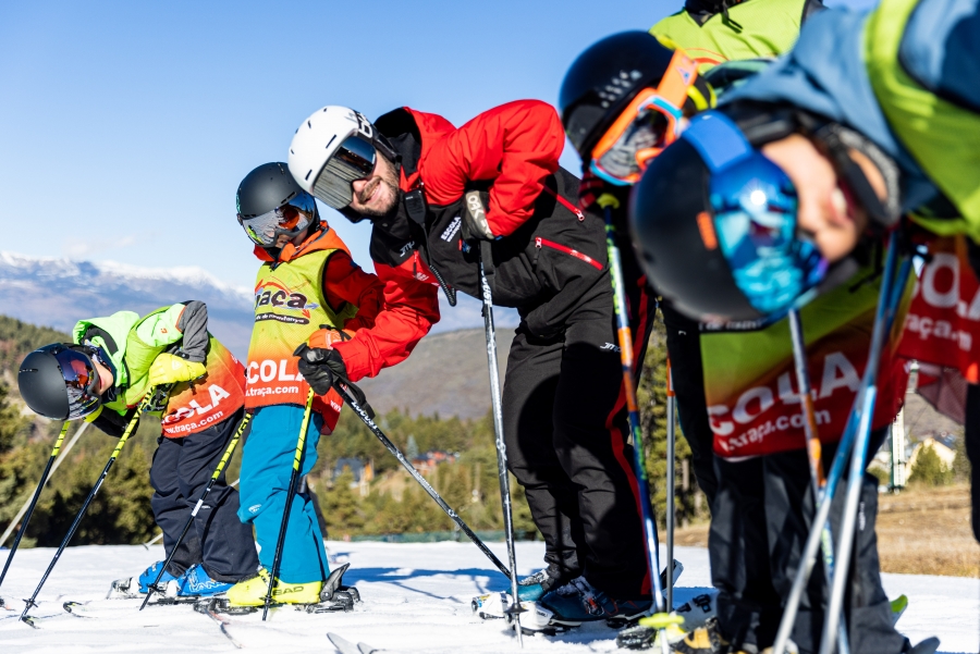 Com ho fem? Dividim els alumnes en grups d´un mínim de 5 i màxim 9 alumnes, prèviament havent fet una valoració del nivell d'esquí de l'alumne.